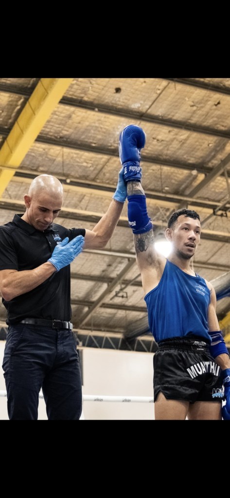 I have been training for over 30 years in a variety of martial arts, and in 2018 went to Thailand for a few months and trained at Sitmonchai Gym, before returning to Australia where I trained at and then assisted at Walton-Legacy Thai Boxing before the pandemic. After I got my master’s degree in social work I moved to Melbourne and trained at Braveheart before moving into an assistant role. I don’t see myself as a fighter, but as a martial artist that enjoys assisting others improve and strive for progress.